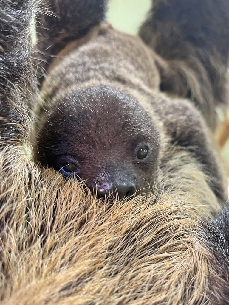 フタユビナマケモノの赤ちゃんは、父「てんてん」と母「ぽんぽん」の間に生まれました。